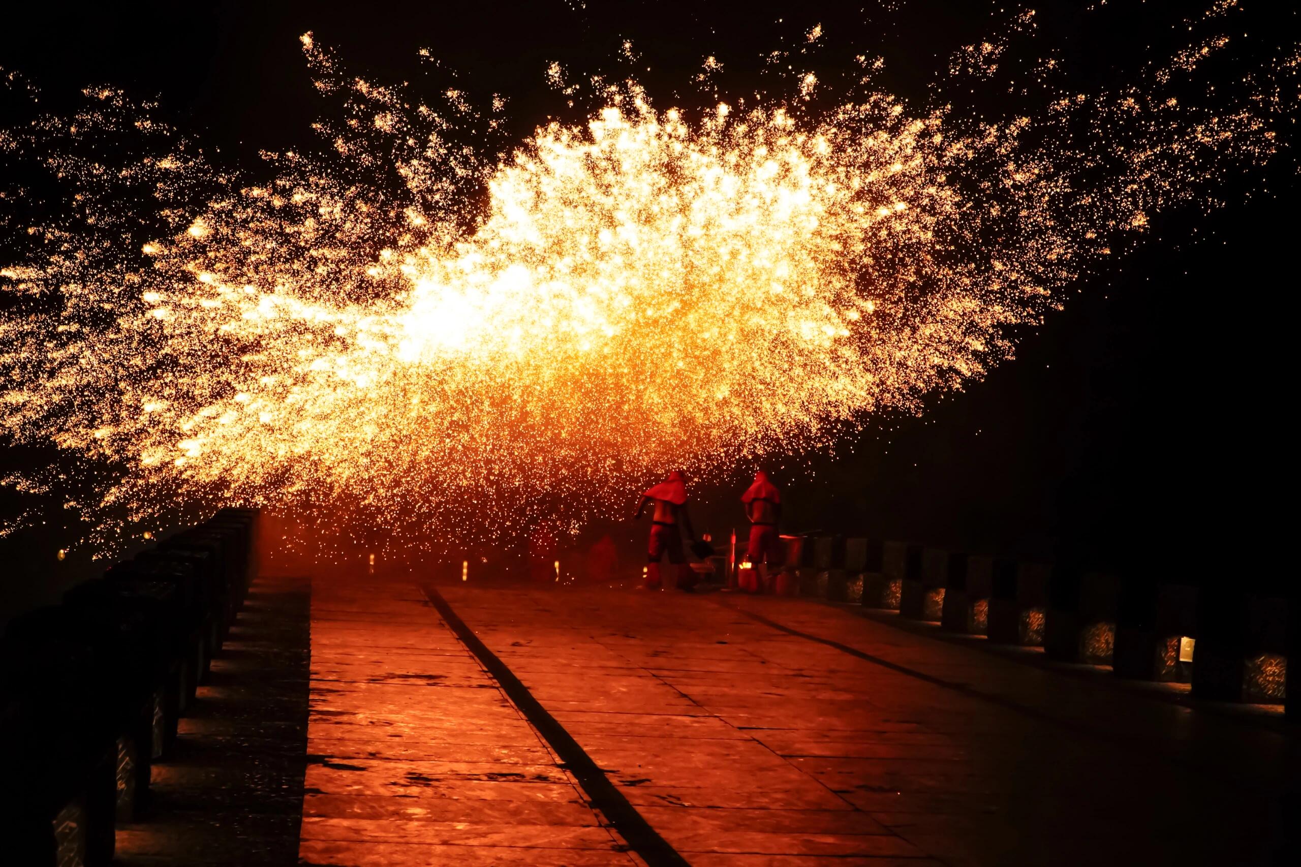 打铁花真正成型于北宋时期,最初是古代先民祭祀天地神灵、祖宗的重要仪式,也是北宋以来中原道教和民间五门工匠共同祭祀太上老君及火神的庄重仪轨,因而具有浓厚的道教神秘色彩和鲜明的五金工匠行业特点。北宋之后,随着大规模的人口迁移活动,打铁花这一独特技艺逐渐在全国范围内流传开来,并在不同地域的文化土壤中生根发芽,形成了各具特色的表现形式。到了明清时期,得益于官府的扶持以及社会各界的广泛喜爱,打铁花迎来了鼎盛发展阶段。其应用场景也从最初较为单一的祭祀。