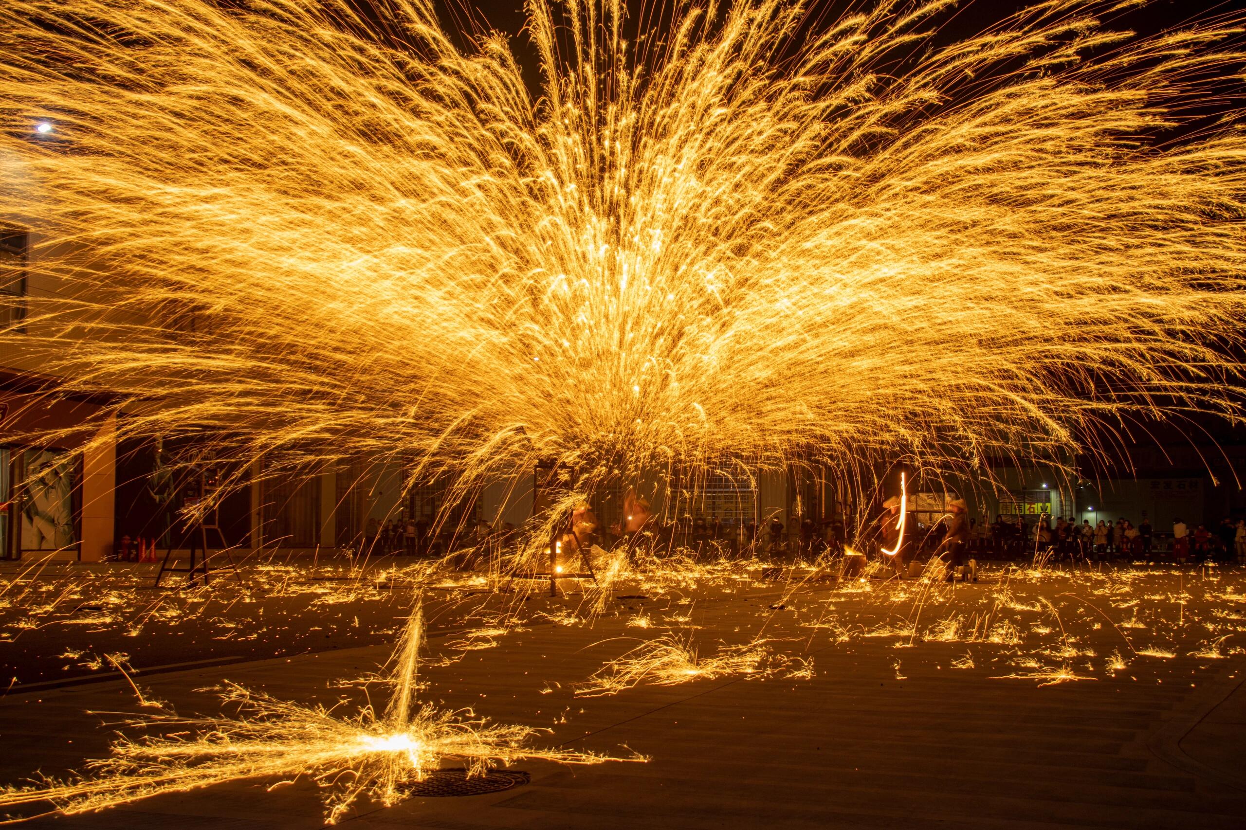 民俗文化节上的打铁花盛宴,是一场集文化与艺术于一体的精彩演出。表演中融入了当地的民俗元素,让观众在欣赏铁花之美的同时,也能深入了解当地的文化传统。铁花与民俗表演相互交织,共同打造出一场难忘的文化盛宴。