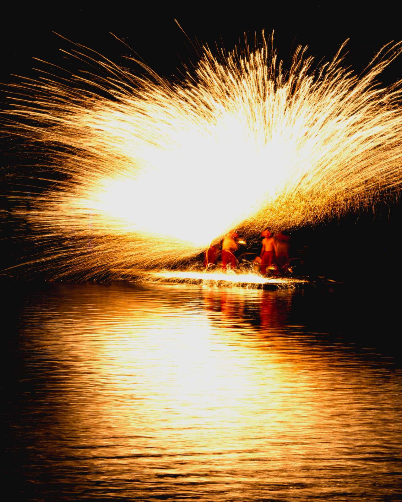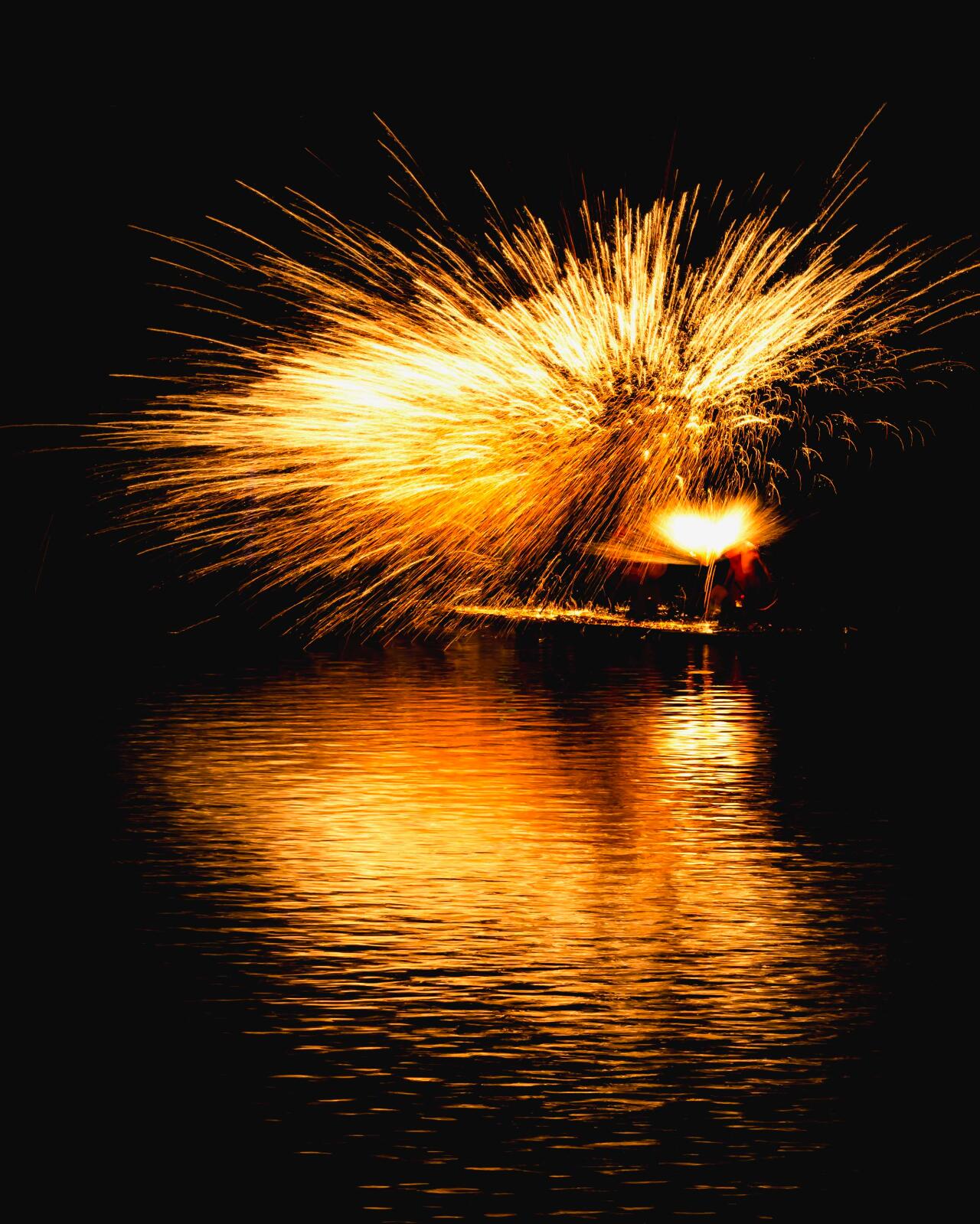 打铁花技艺的起源与古代的冶铁行业紧密相连。在过去,铁匠们在劳作过程中发现,当铁水飞溅时会形成绚丽的火花,极具观赏性。久而久之,这种偶发的现象逐渐演变成了一门独特的表演技艺。据传,打铁花起源于北宋时期,当时的工匠们为了庆祝丰收和节日,开始有意识地将铁水击向天空,形成灿烂的铁花,以祈求来年风调雨顺、平安吉祥。经过不断的发展和传承,打铁花技艺成为了民间文化的瑰宝。
